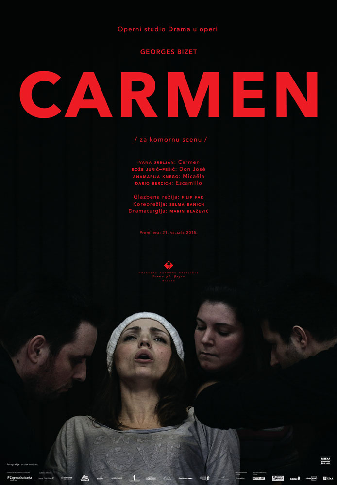 | Operni studio Drama u operi Georges Bizet CARMEN / za komornu scenu / Don José – Bože Jurić-Pešić Escamillo – Dario Bercich Carmen – Ivana Srbljan Micaëla – Anamarija Knego Glazbena režija Filip Fak Koreorežija Selma Banich Dramaturgija Marin Blažević